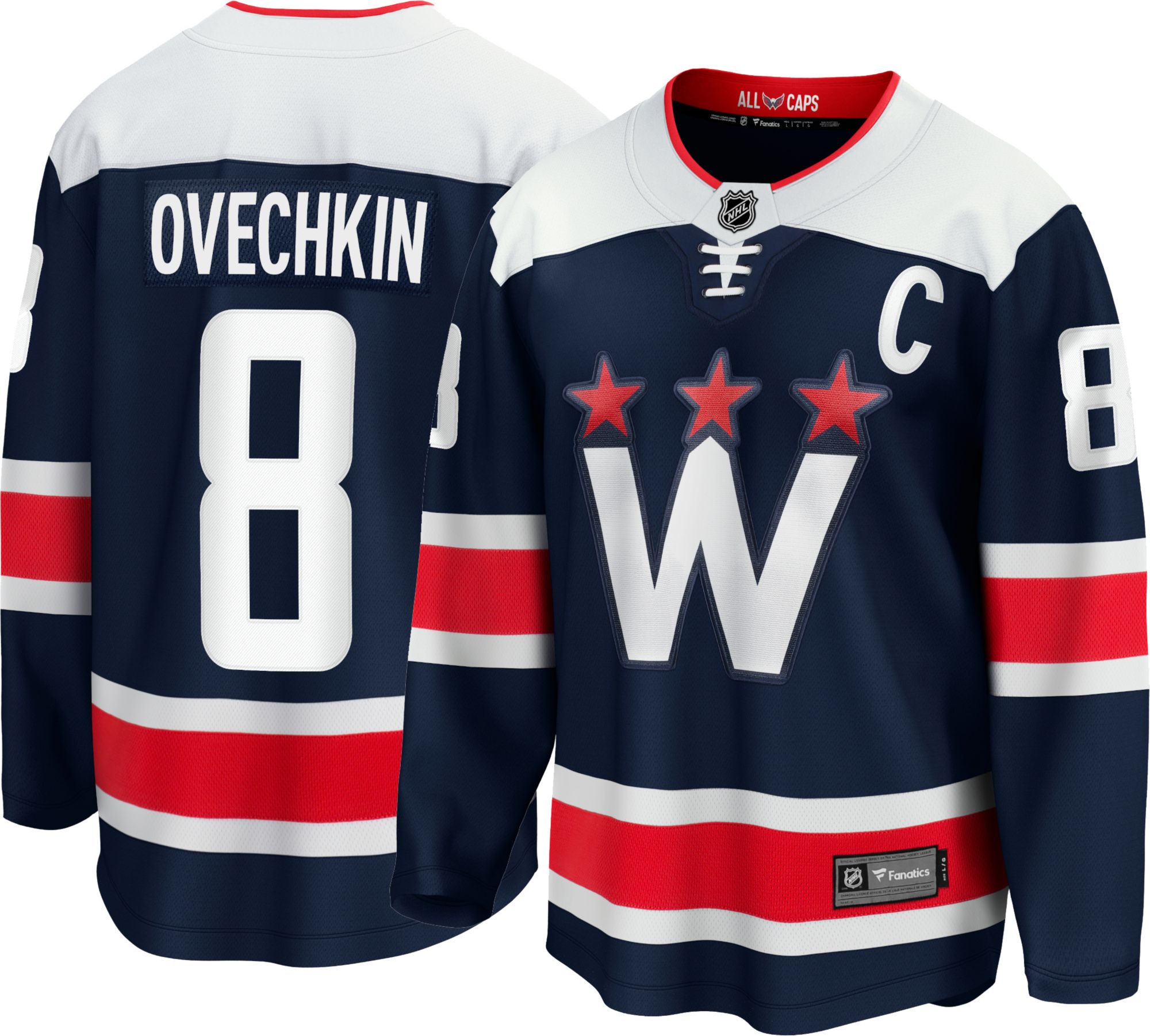 Alex ovechkin's navy blue jersey is the top seller, no surprises there. That frontline worker will receive a jersey and be an honorary member of the team's starting lineup to honor their efforts during the pandemic. The capitals' new sweater is dark blue and features three red stars atop a white block w, a white shoulder panel and red and white stripes. The logo shown here appears on the front of the jersey and features a white w with the washington monument in the middle and three red stars above representing the capital area regions of maryland, virginia, and. The capitals beat the toronto maple leafs in the stadium sereies while downing the chicago.